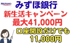 銀行 みずほ銀行の口座開設キャンペーンで最大41,000円分