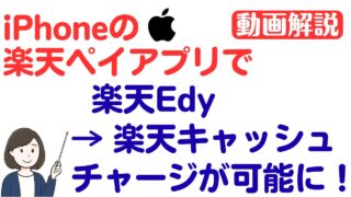 iPhoneの楽天ペイアプリで楽天Edyから楽天キャッシュへのチャージができるようになりました(AndroidスマホがなくてもOK)。そのやり方を実演解説しています。具体的なやり方は動画で実演解説しています👇