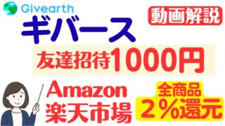 ゼロ円寄付アプリ Givearth(ギバース)で「招待で1,000円相当」がもらえるキャンペーンが開催されています。また、Amazon、楽天市場の全ての商品で2.0%還元になるポイントアップキャンペーンも同時開催中です。※Amazonギフト...