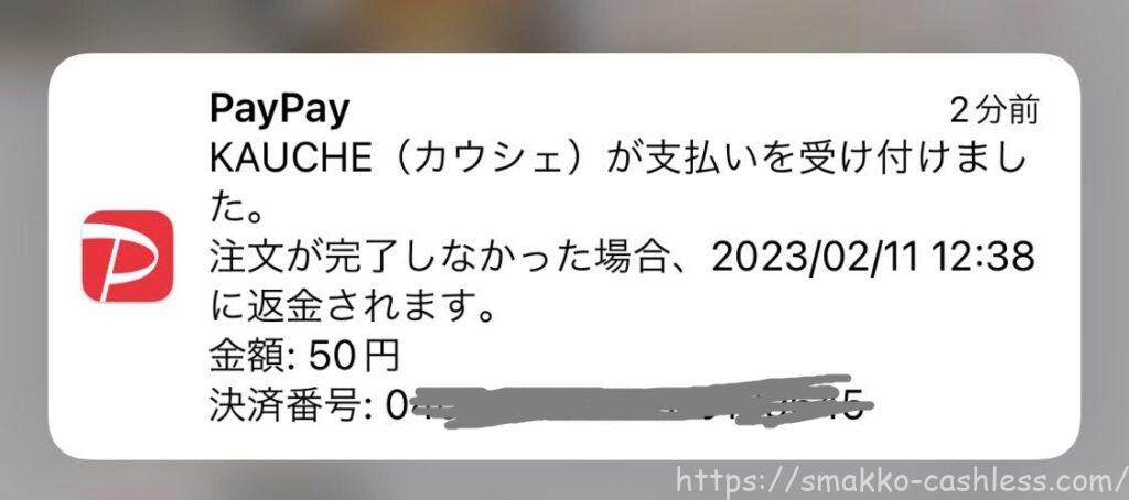 下記はPayPayで支払ったときの通知画面ですが、「注文が完了しなかった場合は返金される」と記載されています。