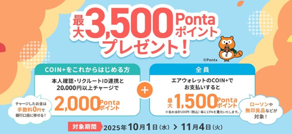 キャンペーンページhttps://point.recruit.co.jp/recruitid/doc/campaign/airwallet202510_charge/V3r8/
