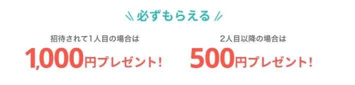 招待する人、招待される人の両方にもれなくCOIN+残高(1人目は1,000円、2人目以降は500円)がもらえます。