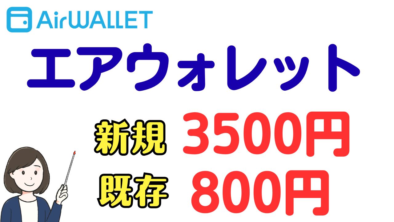 これからエアウォレットを始める人は最大3,500円、既存の人は最大800円獲得できます。