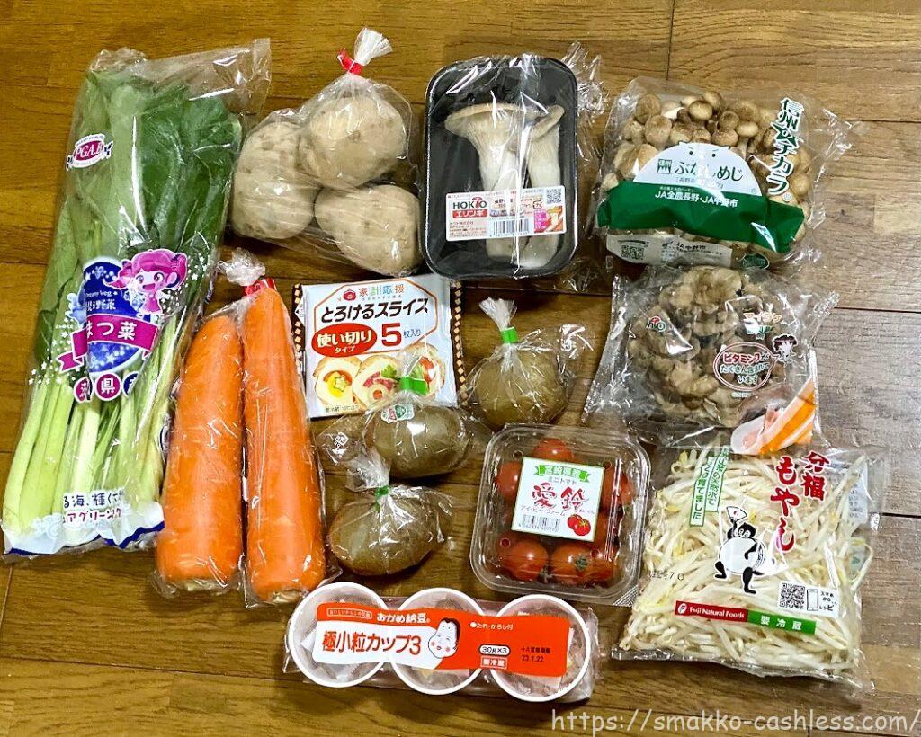 イオンやイトーヨーカドーなどのネットスーパーに比べると品揃えは少ないです。しかし、メインの食材はたいてい揃っているので、肉・野菜・冷凍食品など一般的な食材を買う分には困りません。魚は今のところ取り扱っていないようです(店舗によるのかもしれません)。