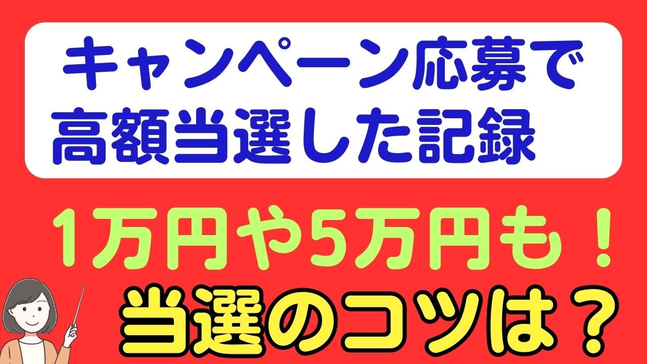 クレジットカードのポイント還元率は通常1%前後なので、100万円使っても還元されるのは1万円です。これに対して、キャンペーン応募で年間1万円が当選すれば、それだけでクレカのポイント還元に匹敵します。数%のクレカのポイント還元にこだわるよりも、「当たりそうなキャンペーン」に応募して当選する方が効率的かもしれません!