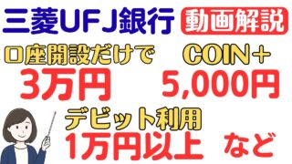 銀行 三菱UFJ銀行口座開設で3万円、COIN+チャージで5,000円など最大77,500円もらえるキャンペーン!