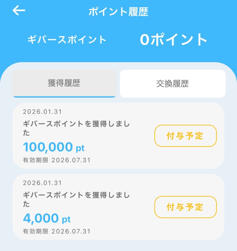 また、ギバースはメールアドレスとパスワードだけで登録できるしくみで、二段階認証に対応していないので、不正ログインなどの可能性を考えると、ポイントは早めに交換するのがよいでしょう。