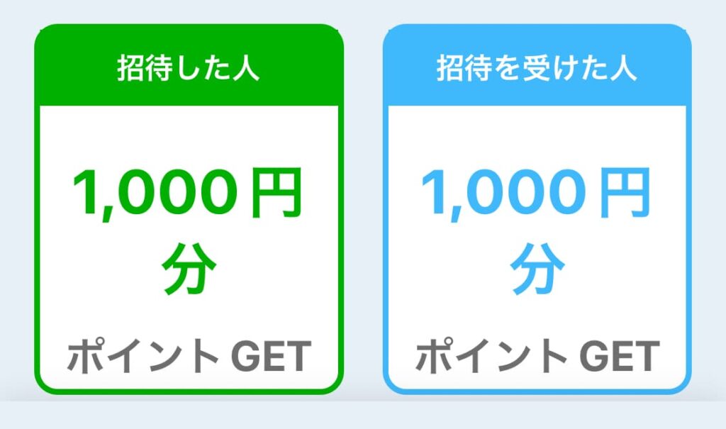 新規登録時に招待コードを入力すると1,000円分のポイントがもらえるキャンペーンが開催されています。