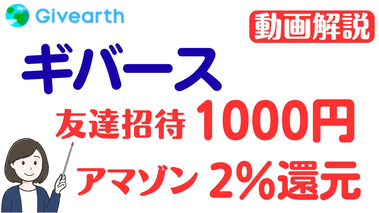 ゼロ円寄付アプリ Givearth(ギバース)で「招待で1,000円」「Amazonで2%還元」というお得なキャンペーンが開催されています。