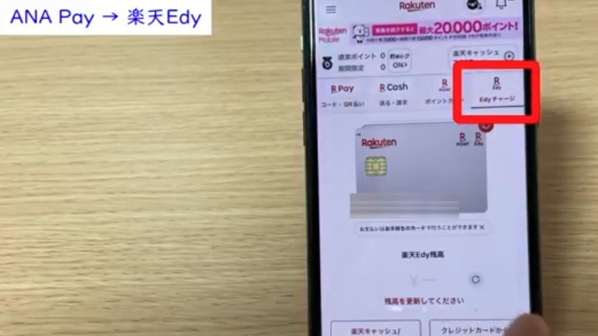 iPhoneでANA Pay→楽天Edy→楽天キャッシュへチャージするやり方