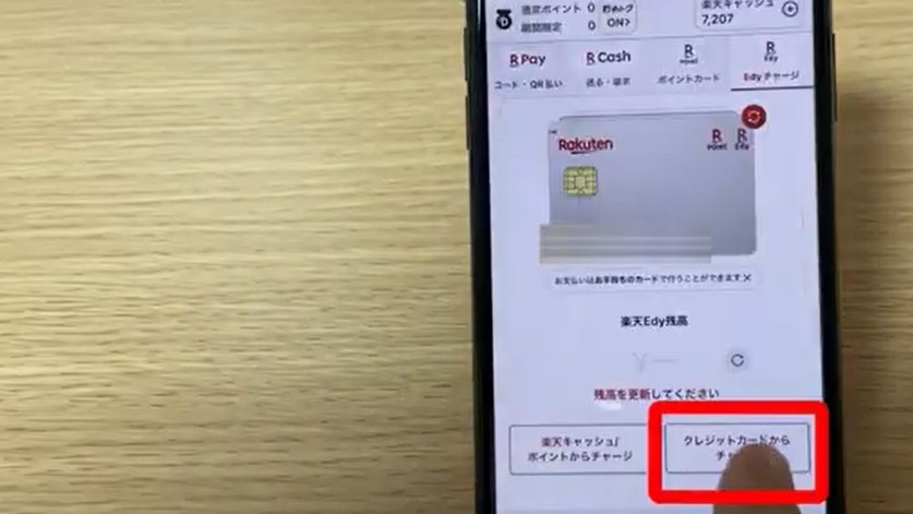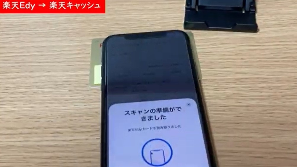 iPhoneの場合は、物理カードの楽天Edyカードを用意し、都度かざして読み取る必要があります。