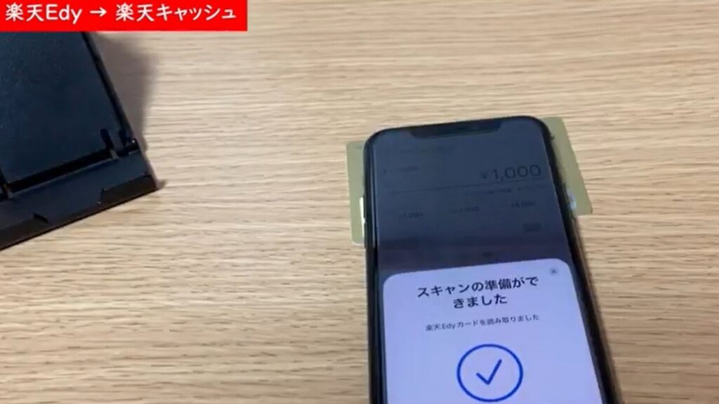 ③Edyカードにスマホの上部をピタッとつけてスキャン