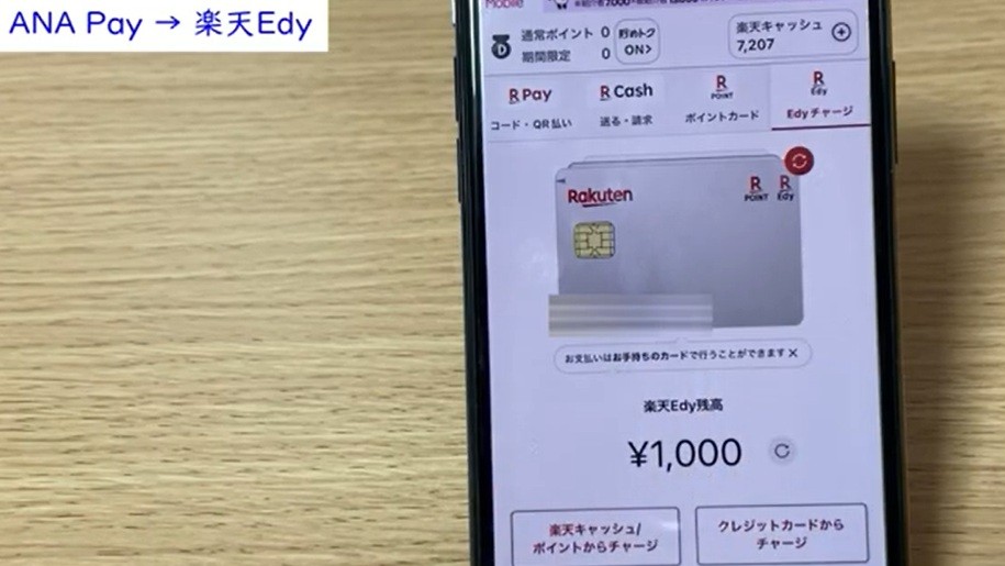 iPhoneでANA Pay→楽天Edy→楽天キャッシュへチャージするやり方