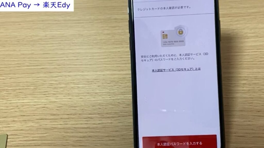 さらに、ANA PayからEdyへチャージする際に認証が入るため、正直、結構手間だと感じました。