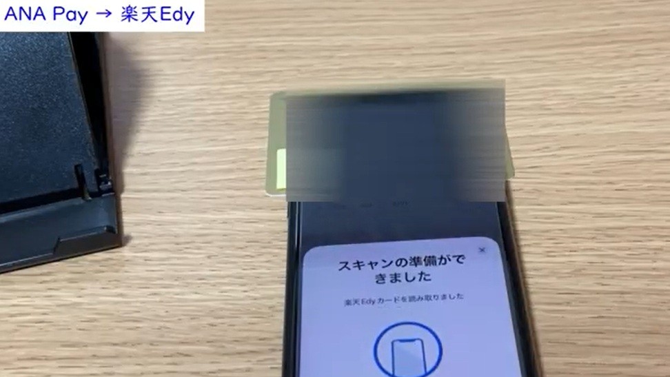 ③Edyカードにスマホの上部をピタッとつけてスキャン