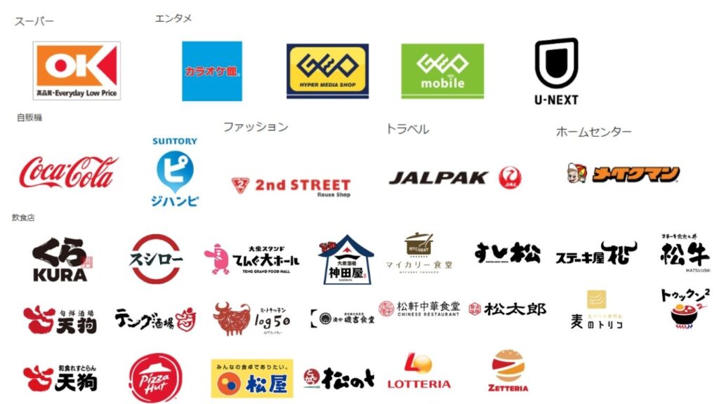 | 対象店舗 | オーケー、くら寿司、スシロー、松屋、ピザハット、コカ・コーラ自販機、U-NEXT、カラオケ館など | セブン-イレブン、ローソン、スシロー、くら寿司、松屋、ピザハット、オーケー、オオゼキ、東急ストア、三和など |