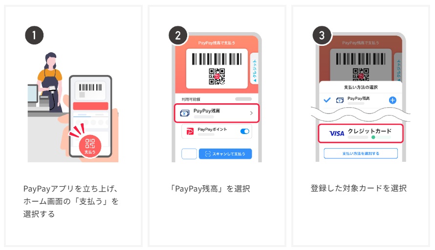 ②支払い方法を対象カードに設定した「PayPay」で合計500円以上支払う