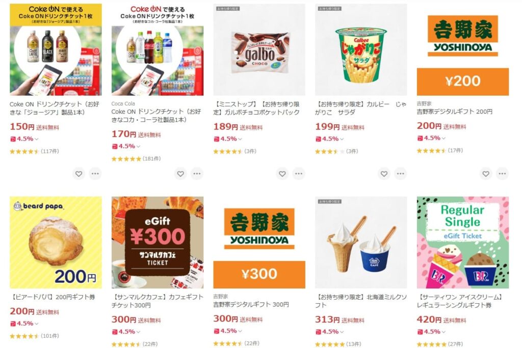 また、100円台〜300円程度の低価格帯の商品もあるため、保有しているポイント数が少ない場合でも使いやすいです。
