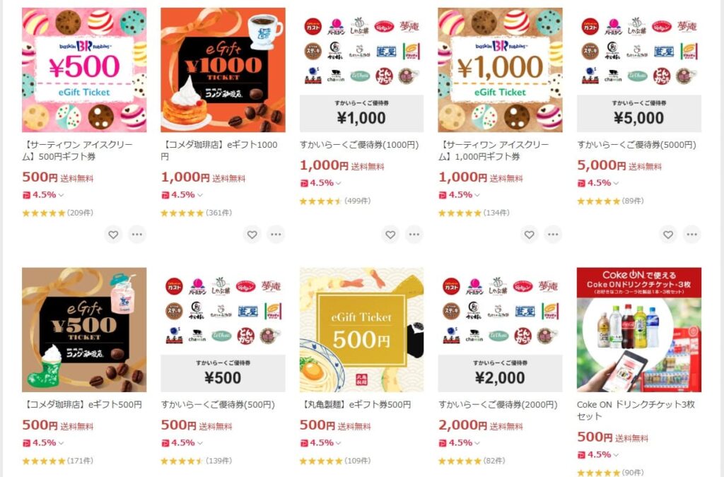 例えば、Yahoo!ショッピング商品券の場合、