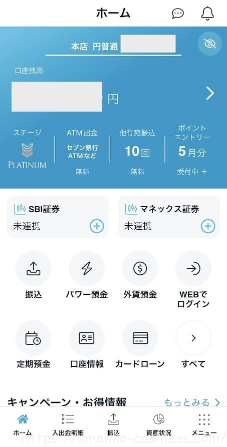 - セブン銀行など提携コンビニATM入出金手数料0円