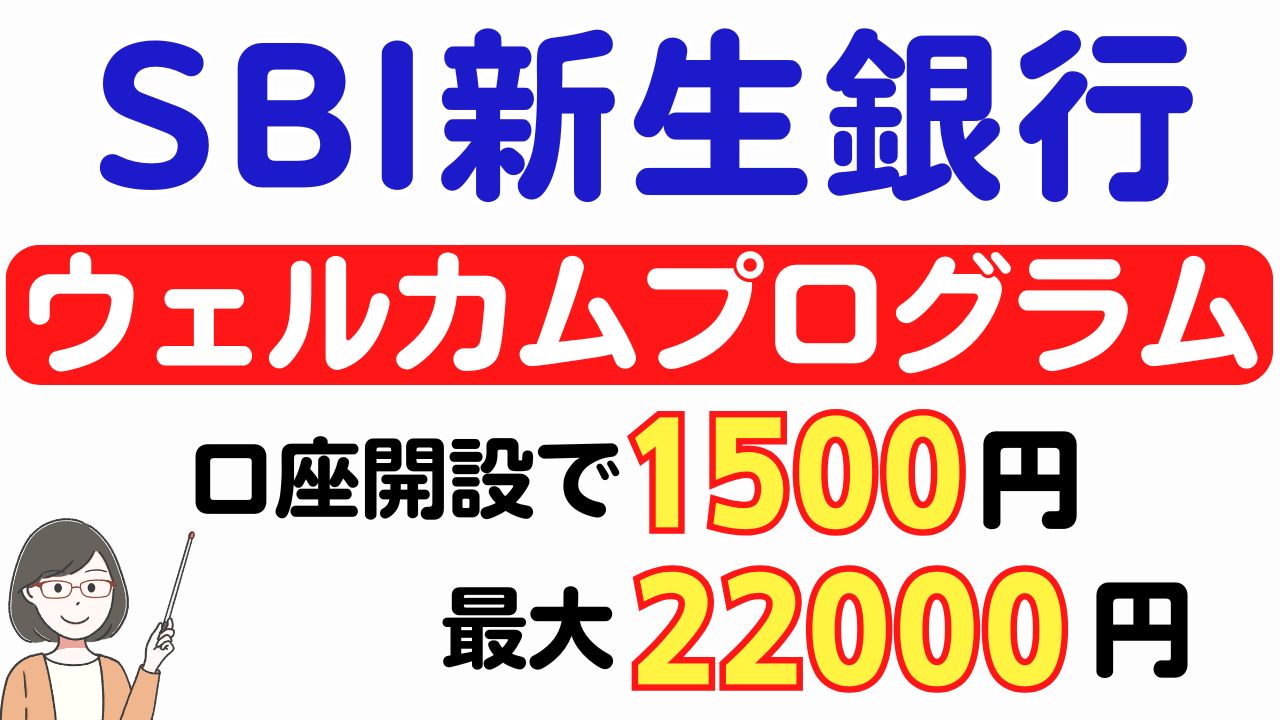 ウェルカムプログラムはSBI新生銀行の口座を新規に開設したお客さま限定で、最大22,000円をプレゼントするプログラムです。