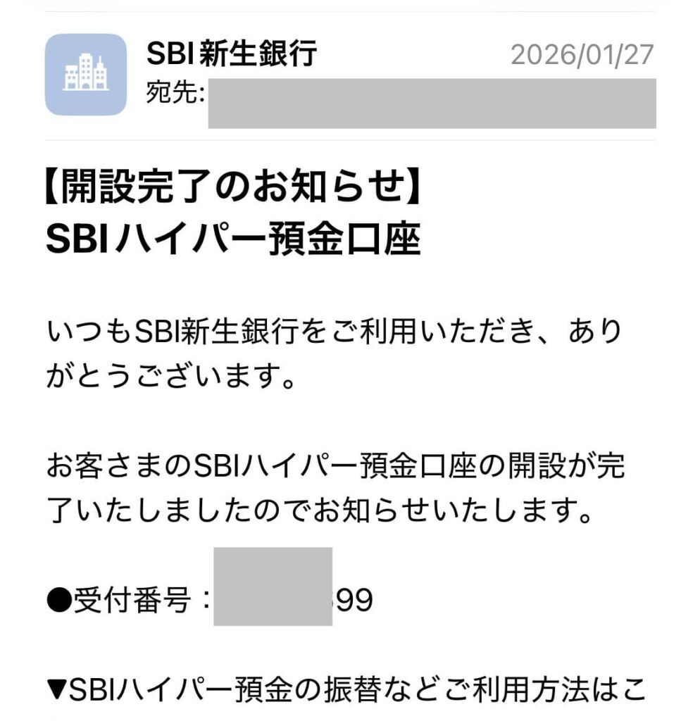 1月以降に口座開設した方は、【開設完了のお知らせ】SBIハイパー預金口座」でメールボックスを検索して、受付場合を確認してみましょう!