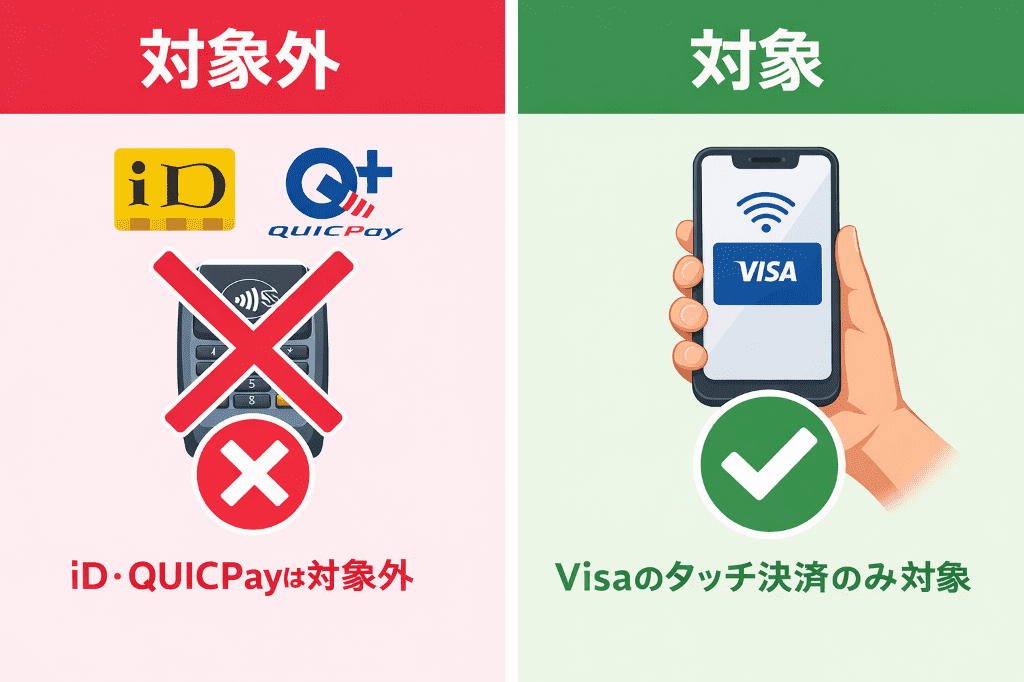 - Visa以外の決済(iD, QUICPayなど)は対象外