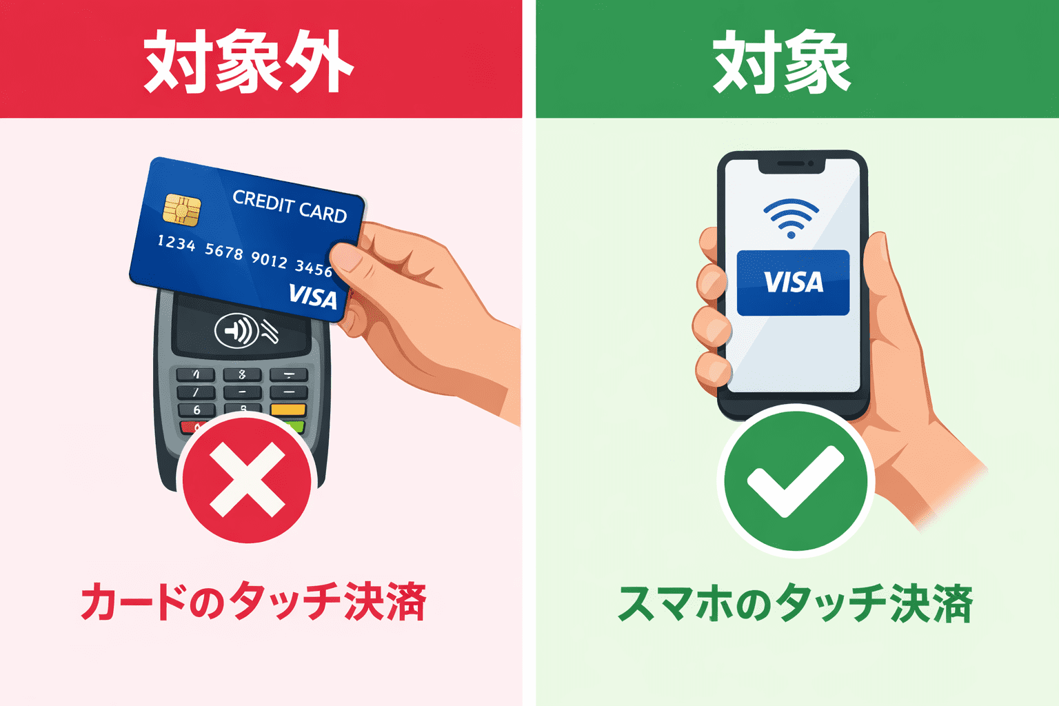 | 対象店舗 | スマートフォンでVisaのタッチ決済を行える全国の加盟店 |