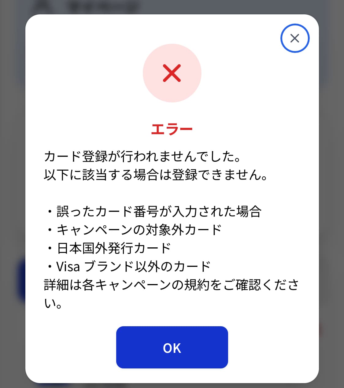 →対象外のカードを登録するとエラーになります