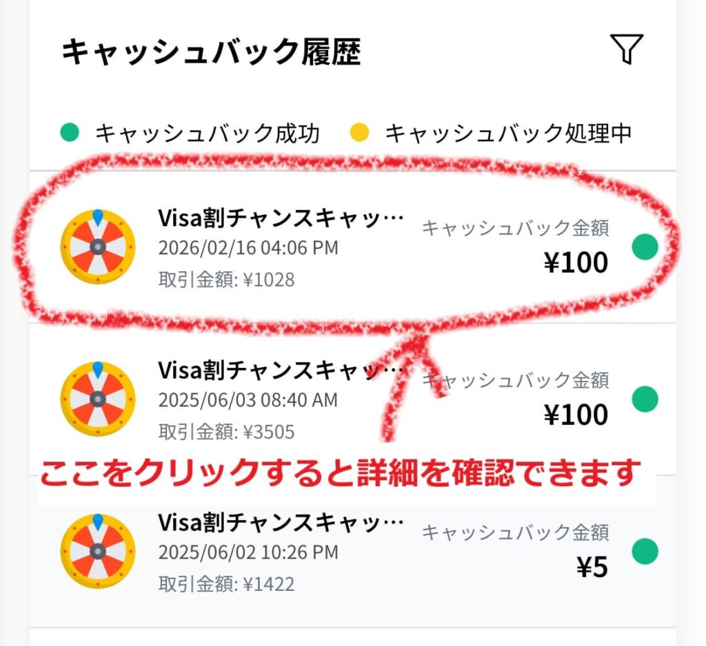 キャッシュバック履歴はVisa割サイトの「利用履歴」で確認できます。
