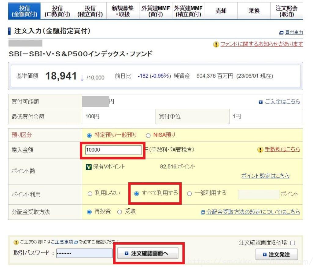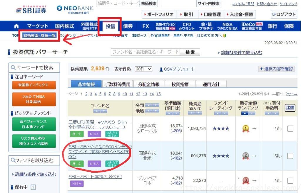 今回は「SBI・V・S&P500インデックス・ファンド」を選びました。