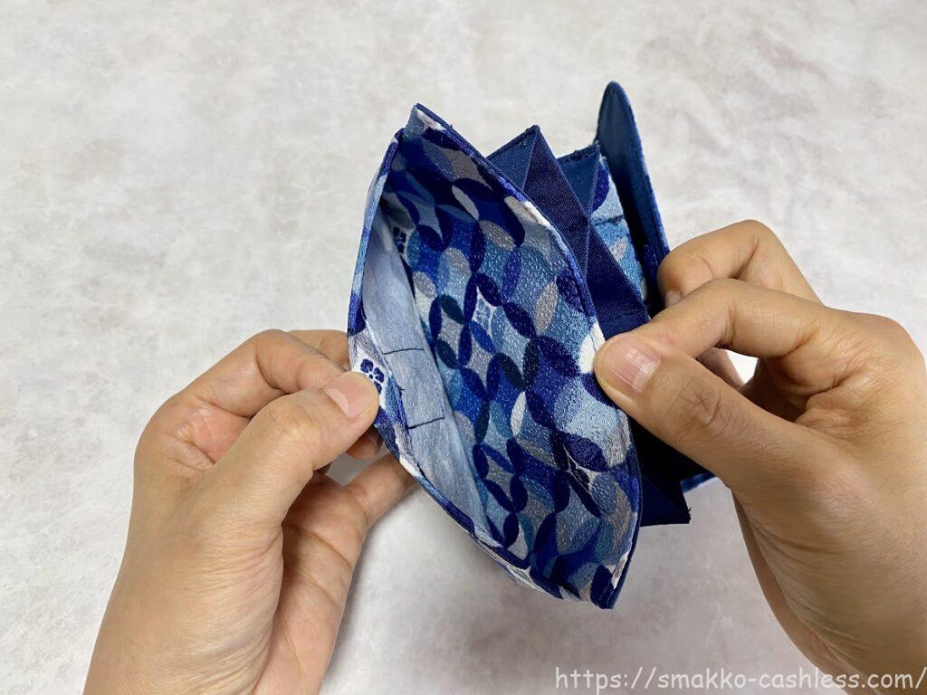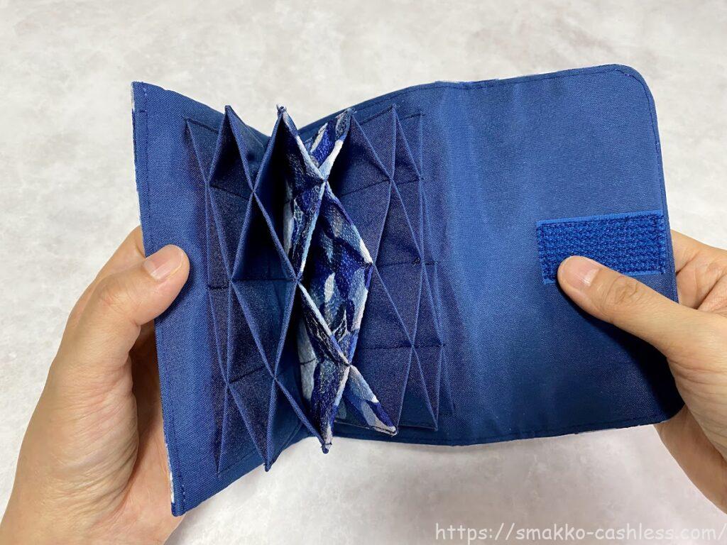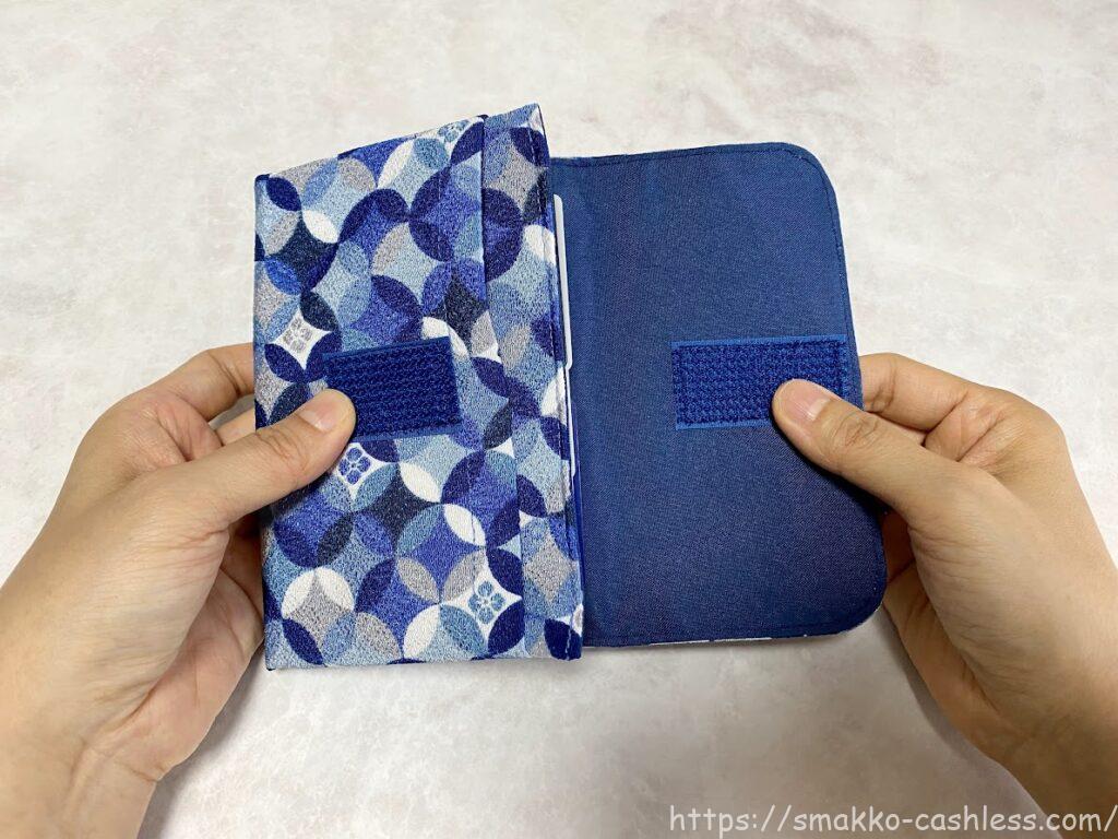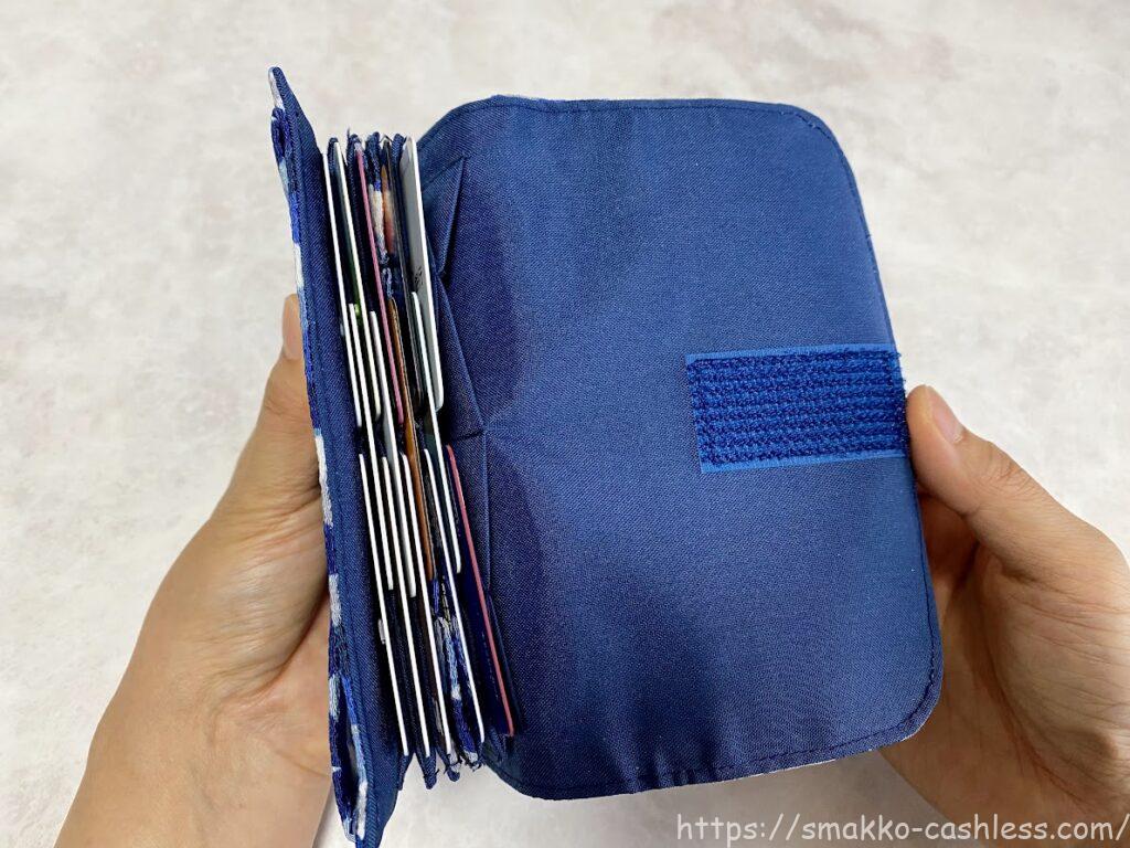フタはマジックテープがついています。長めにテープが付けられているため、カードをたくさんいれて厚みがでてもフタをきちんと閉じれます。