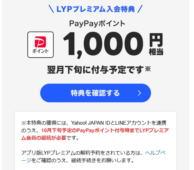 参考記事:LYPプレミアム新規登録でPayPayポイント5,000円分!